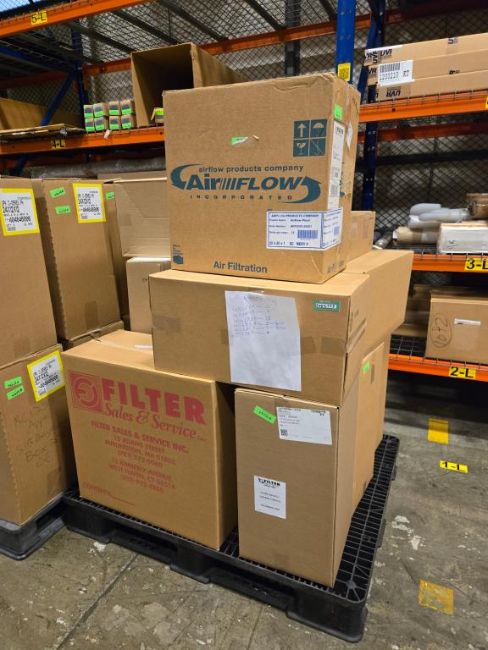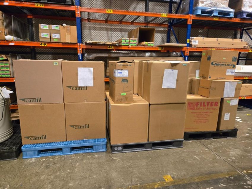 Camfil/Airflow/AeroStar Lot includes (3) Pallets of Air Filter Cartridges: (81) 38227A 24x12x2; (29) 42487A 20x24x2; (11) 40029A 24x12x12; (12) 49551A 12x24x12; (1) 44472A 20x20x1; (6)m42489A 12x24x2; (9) Box 44621A Clamp Gaskets 25 per Box; (2) Box 44623A Clamp Gaskets 25 per Box; (1) 39772A Oversize Inner Bearing A100/300. ***AUCTIONEER NOTICE*** Removal Deadline is December 20th - No Exceptions. HIT# 2452773. Row 2-Floor. Asset Located at 74 New York Ave., Framingham, MA 01701.
