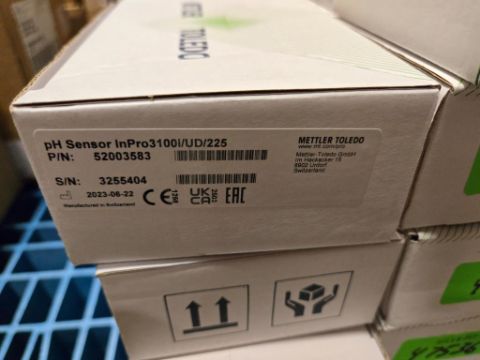 Mettler-Toledo 52003583/30019005/52002566 Lot includes (19) 47536 pH Sensor InPro3100/UD/225; (2) 44884 CO2 Sensor InPro5000i/12/220; (5) 31856 pH Sensor InPro3253/120/PT100. ***AUCTIONEER NOTICE*** Removal Deadline is December 20th - No Exceptions. HIT# 2452767. Row 2-Floor. Asset Located at 74 New York Ave., Framingham, MA 01701.
