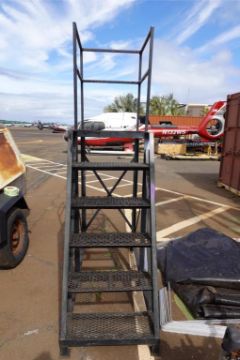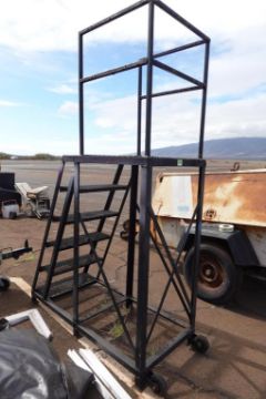Heavy Duty Mobile Staircase Ladder, 6-Step, 62" Height, 28" x 30" in. Top Platform With Safety Rails. *Sale is Subject to Seller Confirmation with Bulk Sale Lot 8000.* HIT# 2519889. Location: Outside Storage Area. Asset Located at Kahului Airport Rd., Unit 107, Kahului, HI 96732 (Maui).