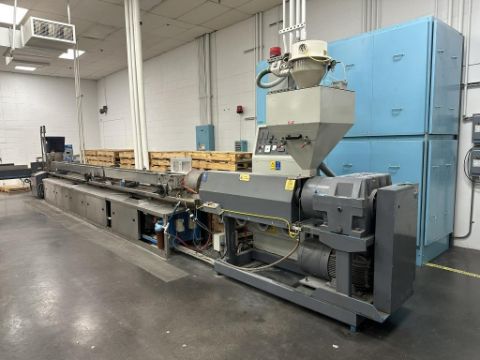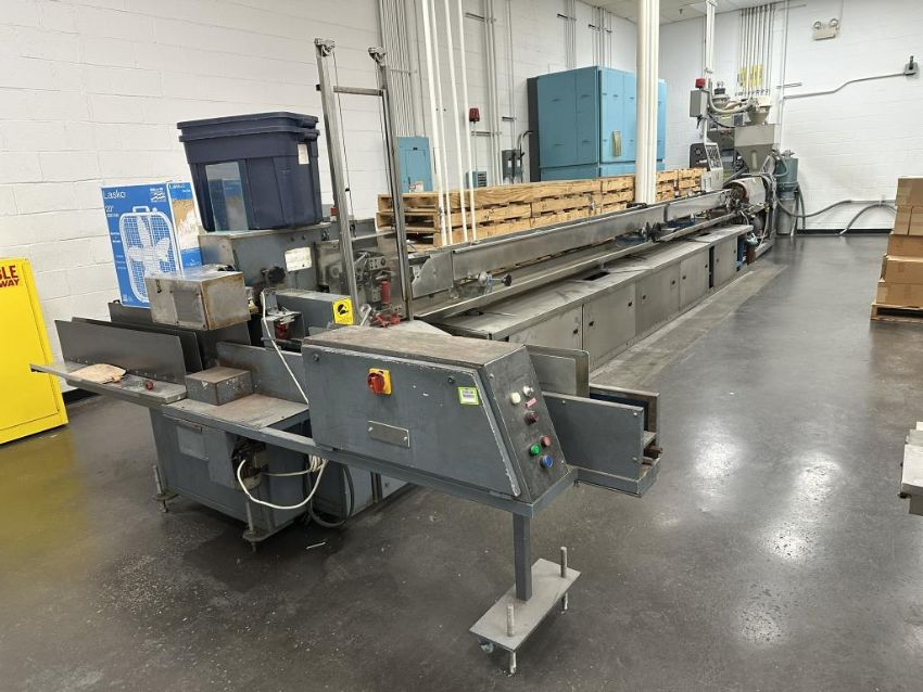 Betol 5025 3" Stick Extrusion Line, Consisting of, Feeder, Extruder, (2) Stainless Steel Water Baths, Cutter and Box Packaging, 480v. S/n#B3573. HIT# 2506336. Loc: Stick Room. Asset Located at 545 Old Elbert Rd., Royston, GA 30662.