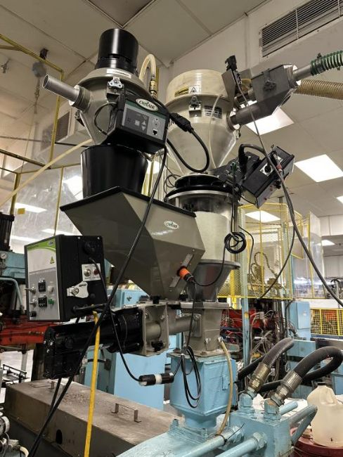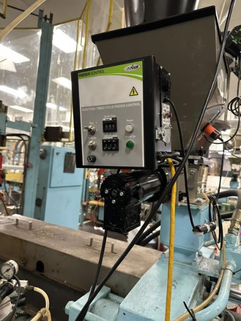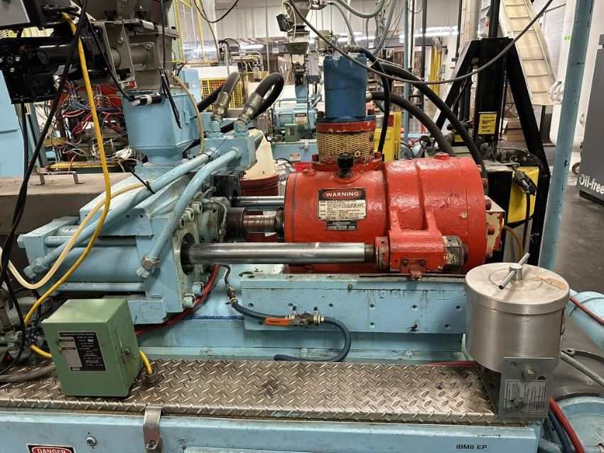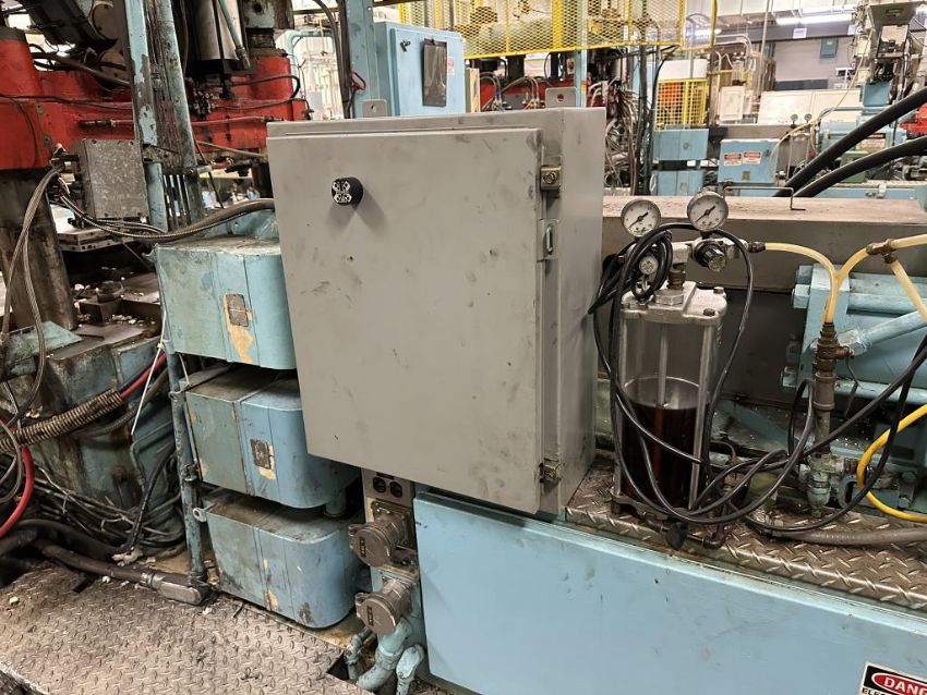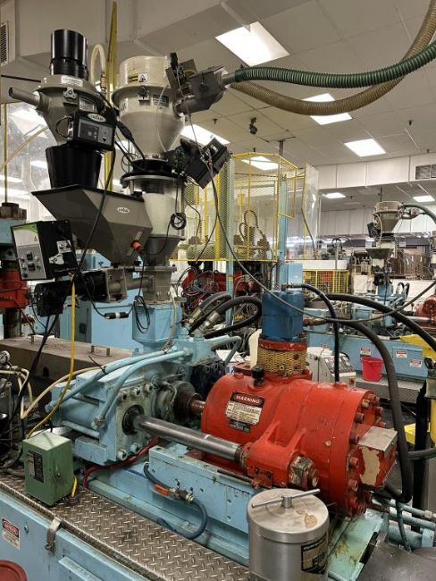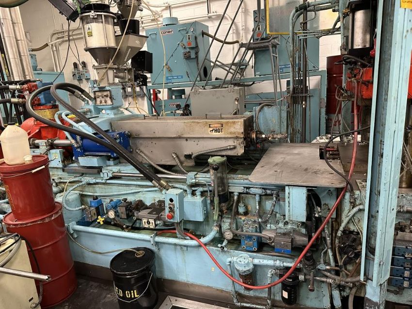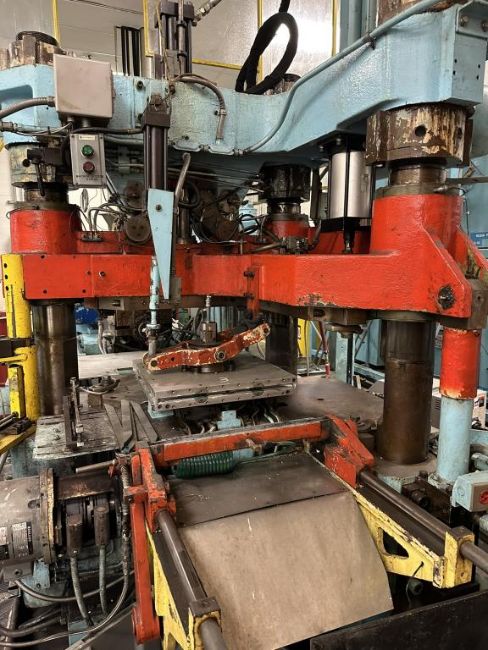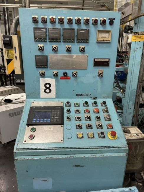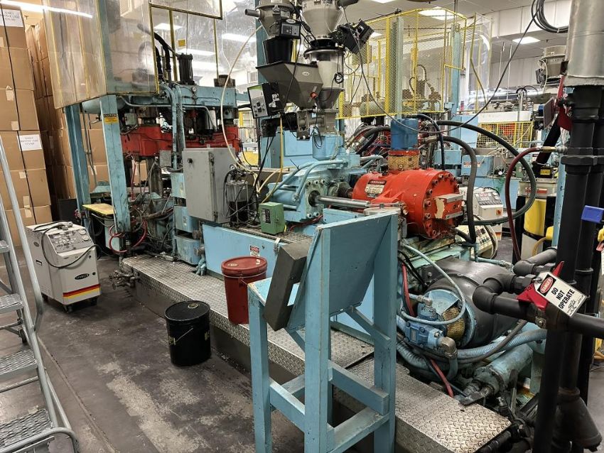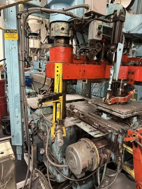 General Weaton 1050 105-Ton, 4-Head Rotary Injection Blow Molding Machine with Conair Feeder and Controller, Allen Bradley PanelView 550 Controller, 480v, (1971). NOTE: Non-Running/Parts Only, Includes Sterlco Temperature Controller. HIT# 2506330. Loc: Production. Asset Located at 545 Old Elbert Rd., Royston, GA 30662.