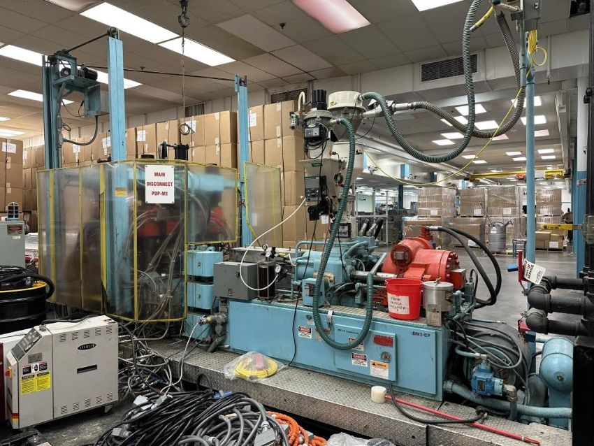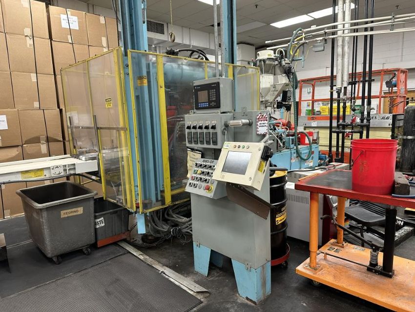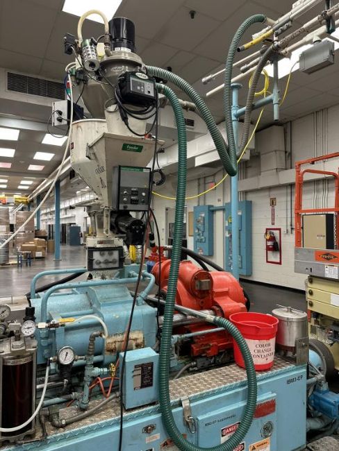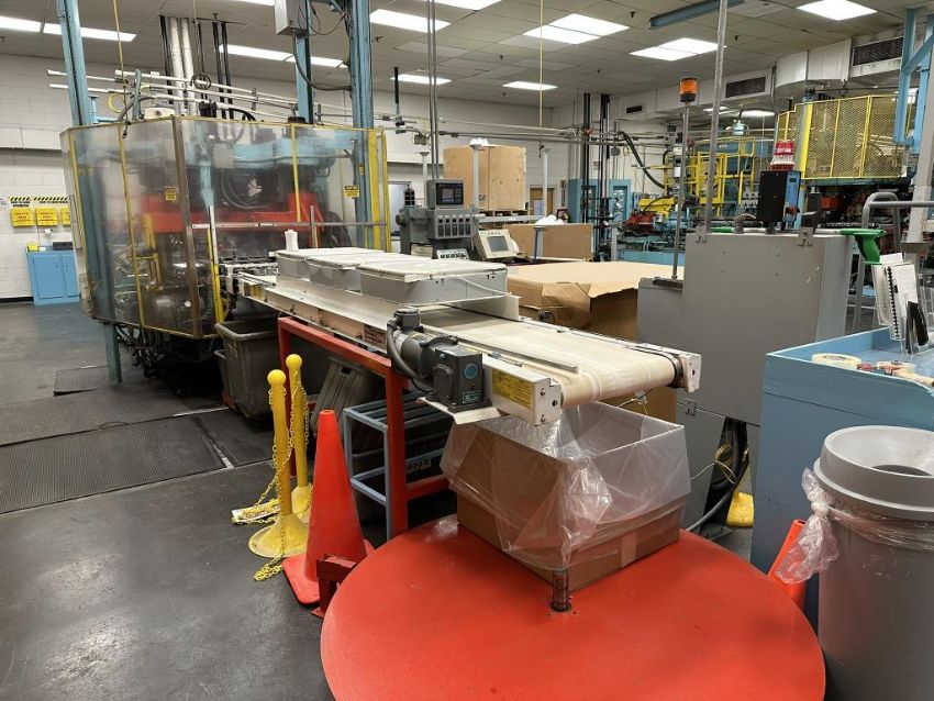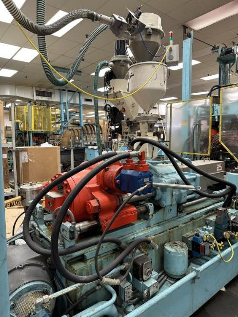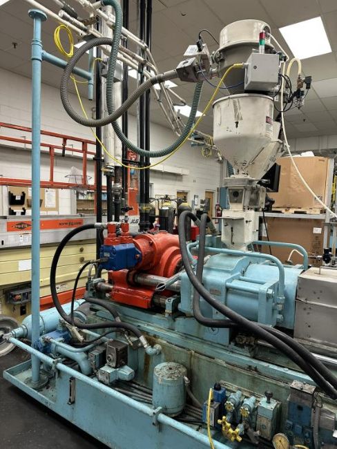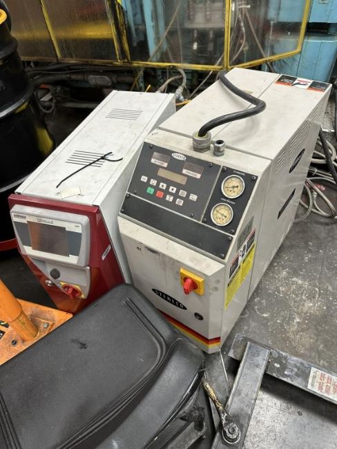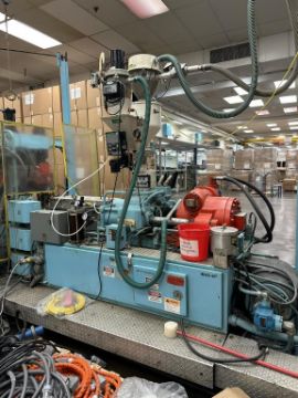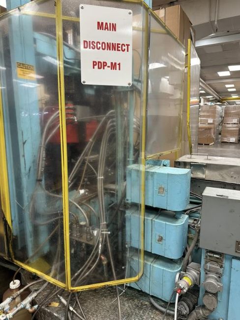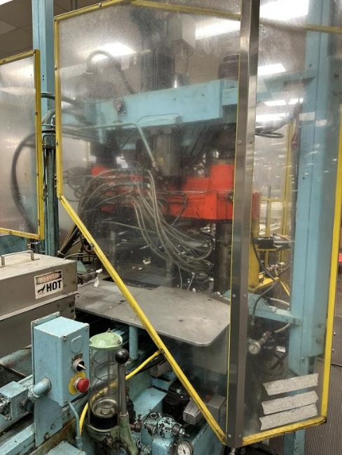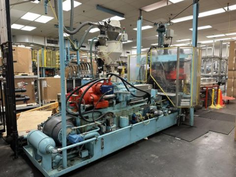 General Weaton 1050 105-Ton, 4-Head Rotary Injection Blow Molding Machine with Conair Feeder and Controller, Allen Bradley PanelView 600 Controller, 480v, (1971). NOTE: Non-Running, could be restored to Working Condition, Includes Sterlco and Wittman Temperature Controllers. HIT# 2506332. Loc: Production. Asset Located at 545 Old Elbert Rd., Royston, GA 30662.