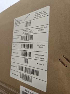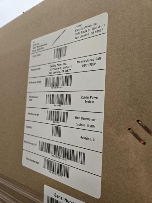 Kohler GM116863 Nema 3R Enclosure Cabinet PN 350-1010, 10kWh, Universal, Outdoor. HIT# 2544918. Bldg. 3 Front Back Wall Asset Located at 2366 Alvarado St., San Leandro, CA 94577.