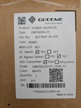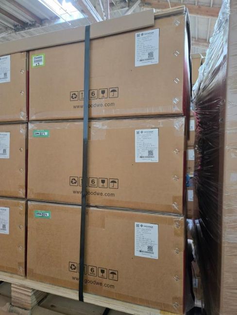 GoodWe GW7600A-ES Lot Includes (3) 7600W Split Phase PV Hybrid Inverters w/ DC Switch & RSD Transmitter, Part#AES7600-04-00P. HIT# 2544882. Bldg. 3 Front. Asset Located at 2366 Alvarado St., San Leandro, CA 94577.