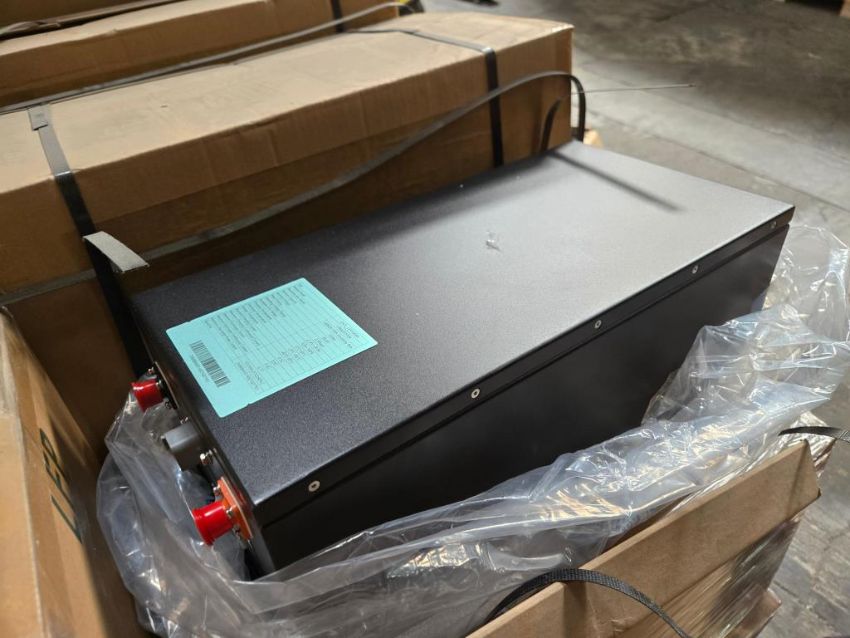 LBM025100A Lot Includes (8) Auto Balancing Lithium Ion Batteries , 24V-2.5KWh. HIT# 2544952. Bldg. 3 Front. Asset Located at 2366 Alvarado St, San Leandro, CA 94577.
