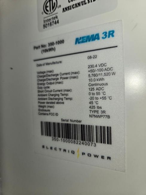Lot Includes (9) Nema 3R Enclosure Cabinets, PN 350-1010, 10kWh, Universal, Outdoor. HIT# 2544937. Bldg. 3 Front Back Wall. Asset Located at 2366 Alvarado St, San Leandro, CA 94577.