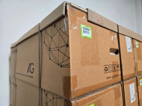 GoodWe GW7600A-BP Lot to include (4) 7600W Split Phase AC Coupled PV Inverter, Part#ABP7600-02-00P. HIT# 2544808, 2544809, 2544810, 2544811. Bldg. 3 Front. Asset Located at 2366 Alvarado St., San Leandro, CA 94577.