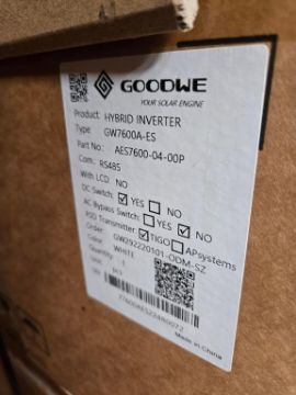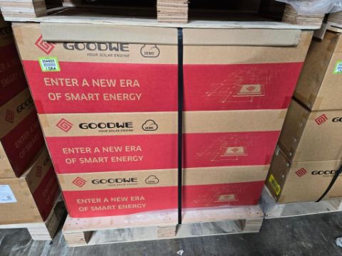 GoodWe GW7600A-ES Lot Includes (6) 7600W Split Phase PV Hybrid Inverters w/ DC Switch & RSD Transmitter, Part#AES7600-04-00P. HIT# 2544825. Bldg. 3 Front. Asset Located at 2366 Alvarado St., San Leandro, CA 94577.