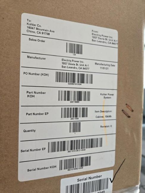 Kohler GM116863 Lot Includes (3) Nema 3R Enclosure Cabinet PN 350-1010, 10kWh, Universal, Outdoor. HIT# 2544922. Bldg. 3 Front Back Wall Asset Located at 2366 Alvarado St., San Leandro, CA 94577.