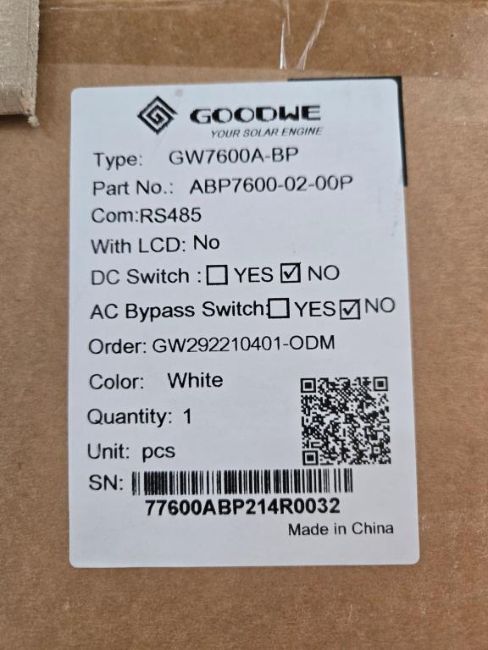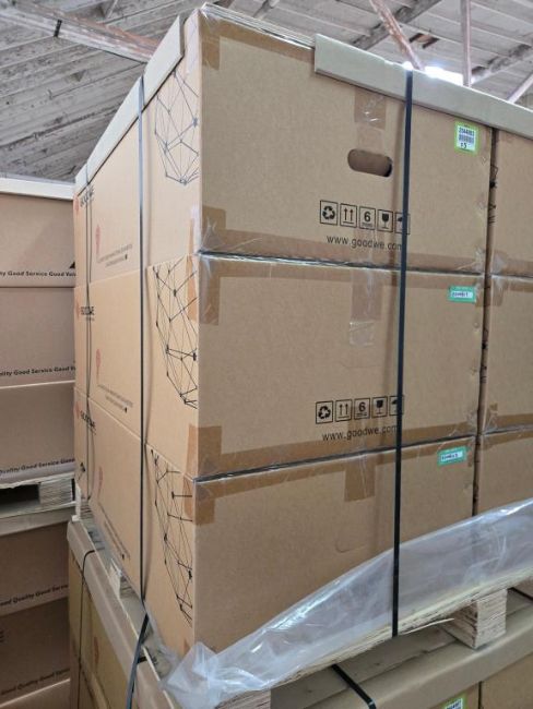 GoodWe GW7600A-BP Lot Includes (3) 7600W Split Phase AC Coupled PV Inverters, Part#ABP7600-02-00P. HIT# 2544803. Bldg. 3 Front. Asset Located at 2366 Alvarado St., San Leandro, CA 94577.