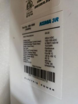 Lot Includes (3) Nema 3R Enclosure Cabinets, PN 350-0510, 5kWh, Universal, Outdoor. HIT# 2544946. Bldg. 3 Front Back Wall. Asset Located at 2366 Alvarado St, San Leandro, CA 94577.