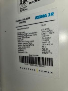 Lot Includes (9) Nema 3R Enclosure Cabinets, PN 350-1010, 10kWh, Universal, Outdoor. HIT# 2544938. Bldg. 3 Front Back Wall. Asset Located at 2366 Alvarado St, San Leandro, CA 94577.