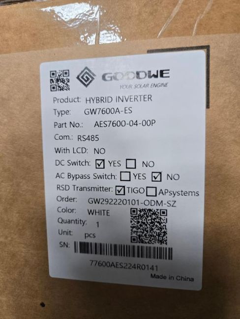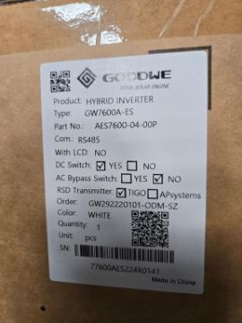 GoodWe GW7600A-ES 7600W Split Phase PV Hybrid Inverter w/ DC Switch & RSD Transmitter, Part#AES7600-04-00P. HIT# 2544821. Bldg. 3 Front. Asset Located at 2366 Alvarado St., San Leandro, CA 94577.