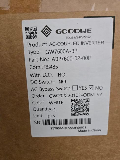 GoodWe GW7600A-BP Lot includes (2) 7600W Split Phase AC Coupled PV Inverter, Part#ABP7600-02-00P. HIT# 2544890 & 2544891. Bldg. 3 Front. Asset Located at 2366 Alvarado St., San Leandro, CA 94577.