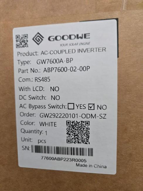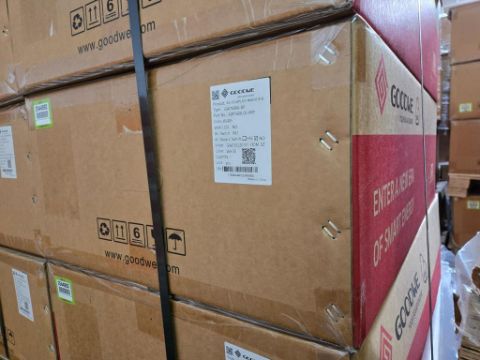 GoodWe GW7600A-BP Lot includes (2) 7600W Split Phase AC Coupled PV Inverter, Part#ABP7600-02-00P. HIT# 2544892 & 2544893. Bldg. 3 Front. Asset Located at 2366 Alvarado St., San Leandro, CA 94577.