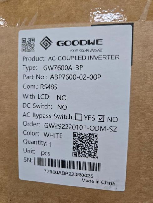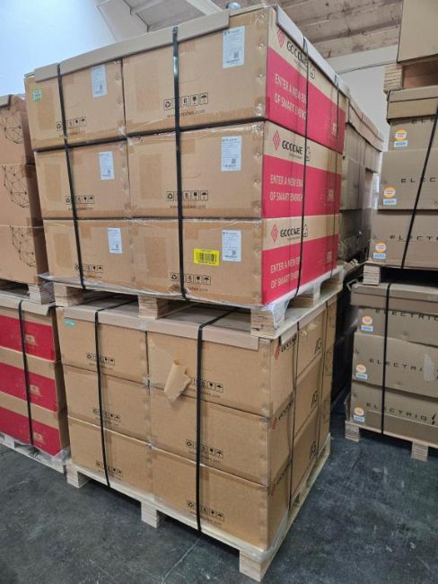 GoodWe GW7600A-BP Lot Includes (12) 7600W Split Phase AC Coupled PV Inverters, Part#ABP7600-02-00P. HIT# 2544907. Bldg. 3 Front. Asset Located at 2366 Alvarado St., San Leandro, CA 94577.