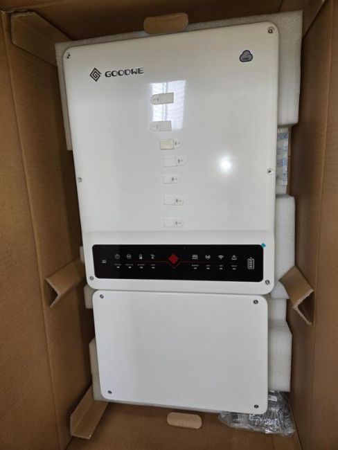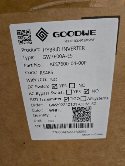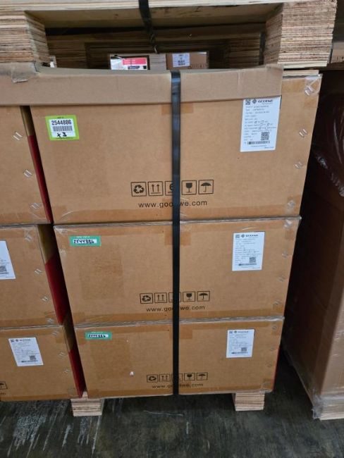 GoodWe GW7600A-ES Lot Includes (3) 7600W Split Phase PV Hybrid Inverters w/ DC Switch & RSD Transmitter, Part#AES7600-04-00P. HIT# 2544886. Bldg. 3 Front. Asset Located at 2366 Alvarado St., San Leandro, CA 94577.