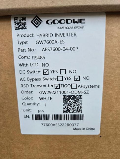 GoodWe GW7600A-ES Lot Includes (16) 7600W Split Phase PV Hybrid Inverters w/ DC Switch & RSD Transmitter, Part#AES7600-04-00P. HIT# 2544914. Bldg. 3 Front Back Wall. Asset Located at 2366 Alvarado St., San Leandro, CA 94577.