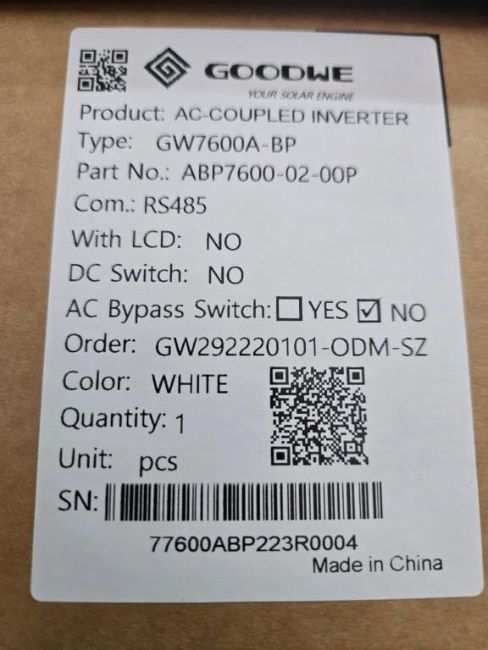 GoodWe GW7600A-BP Lot includes (2) 7600W Split Phase AC Coupled PV Inverter, Part#ABP7600-02-00P. HIT# 2544888 & 2544889. Bldg. 3 Front. Asset Located at 2366 Alvarado St., San Leandro, CA 94577.