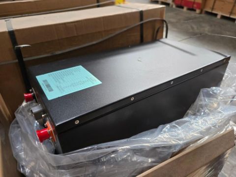LBM025100A Lot Includes (8) Auto Balancing Lithium Ion Batteries , 24V-2.5KWh. HIT# 2544951. Bldg. 3 Front. Asset Located at 2366 Alvarado St, San Leandro, CA 94577.