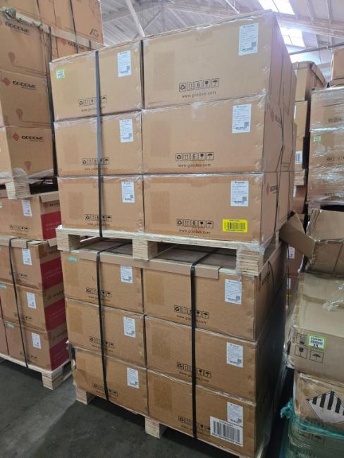 GoodWe GW7600A-BP Lot Includes (12) 7600W Split Phase AC Coupled PV Inverters, Part#ABP7600-02-00P. HIT# 2544896. Bldg. 3 Front. Asset Located at 2366 Alvarado St., San Leandro, CA 94577.