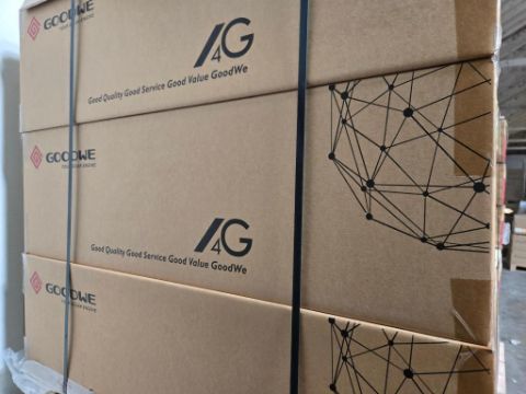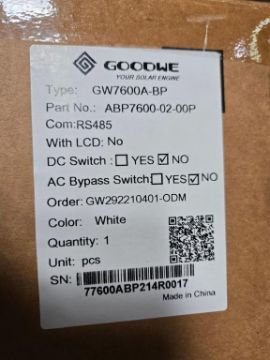 GoodWe GW7600A-BP 7600W Split Phase AC Coupled PV Inverter, Part#ABP7600-02-00P. HIT# 2544812. Bldg. 3 Front. Asset Located at 2366 Alvarado St., San Leandro, CA 94577.