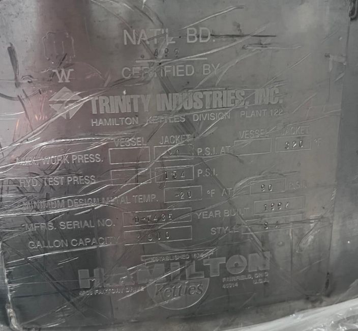 Hamilton 300 Gallon Vacuum Cook Kettle. S/N D-7436. HIT #2539105. Asset is Located at 7880 Airway Road, Suite 4, San Diego, CA 92154.