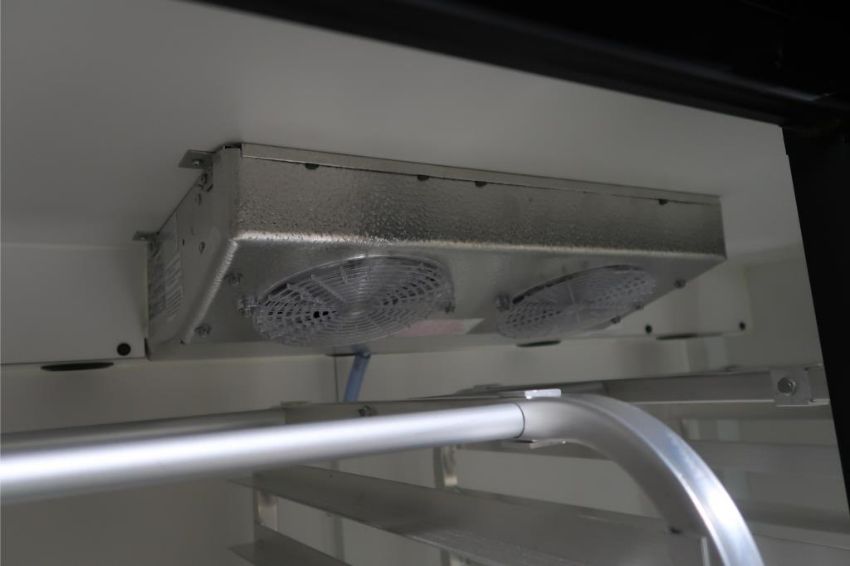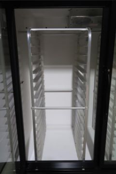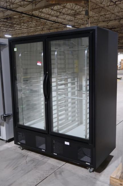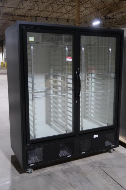Alternative Air Glass Double-Door Reach-In Cooler, 64" x 32" x 78" (LxDxH), 18" x 24" Sheet Tray Rack Shelving, Heatcraft Model TAK13AG Evaporator. HIT# 2478892. Asset Located at 6600 New Venture Gear Dr. Suite P19, Syracuse, NY 13057.