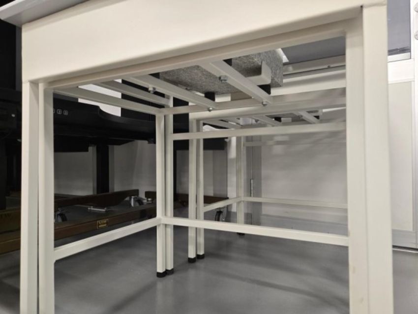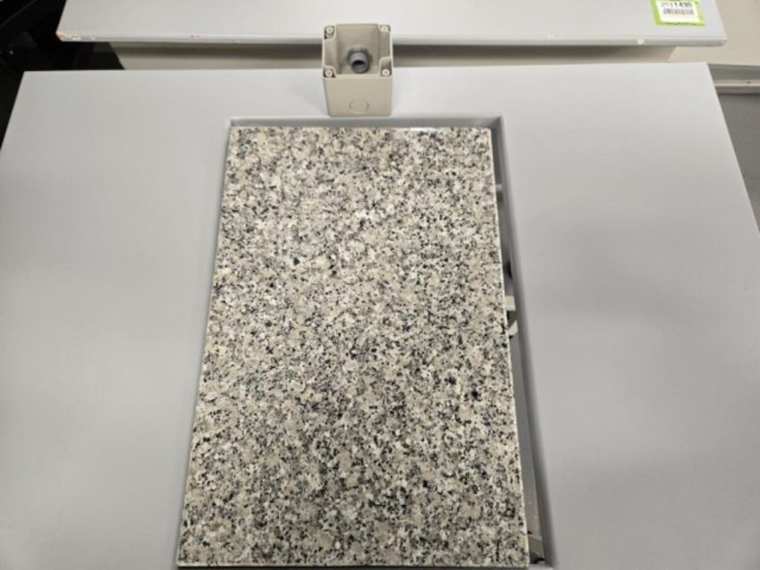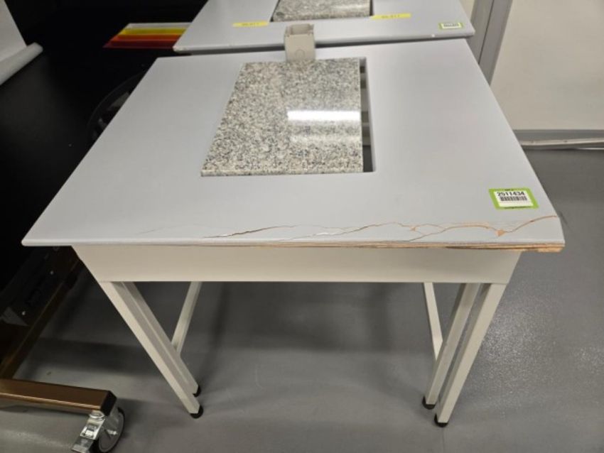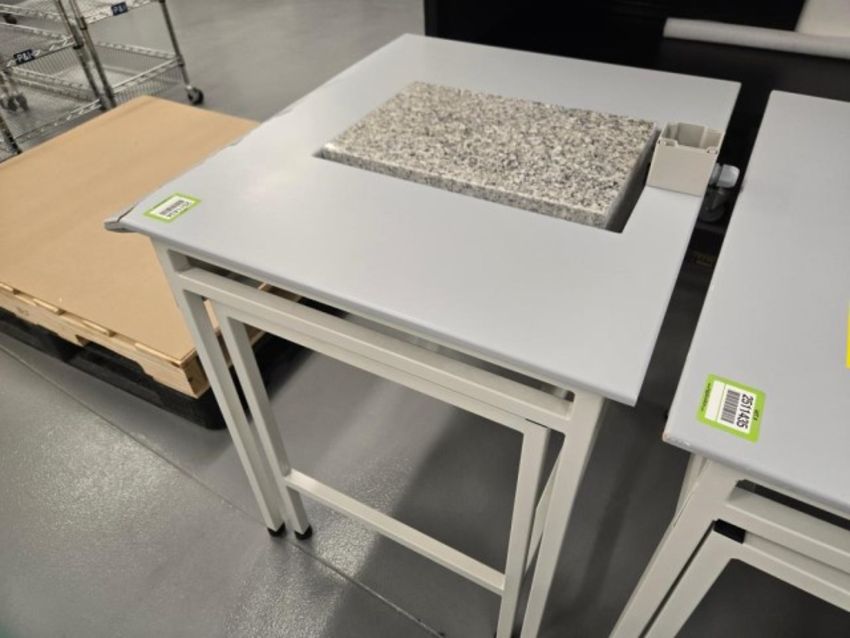 Laboratory Balance Table, 25.5"x30" w/ Polished Grante Slab, 4.5"x10.5"x16" as Integrated Worktop Mounted on Absorbent Rubber Pads. HIT# 2511434. Asset Located at 1945 Craig Rd., St. Louis, MO 63146.