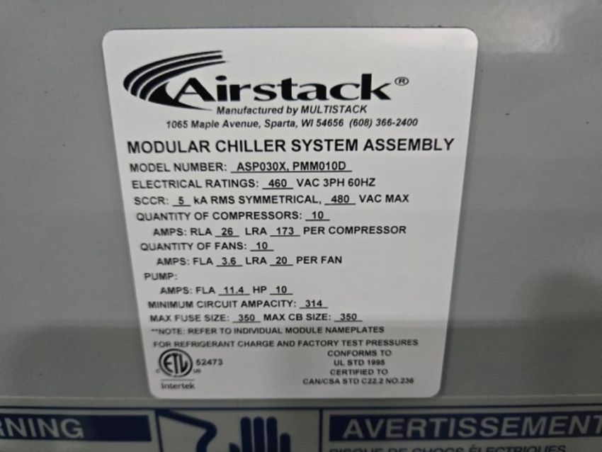 Airstack ASP030X-PMM010D/PMM010DHCACH Air Cooled Industrial Chiller Scroll Module w/ (2) Armstrong Model 4001527-089 Vertical In-Line Pumps (see tag for details). SN# BA05-114. HIT# 2511553. Loc: J4 to J5. Asset Located at 5484 Brown Ave., St. Louis, MO 63120.***Auctioneer Notice*** Please be advised a handling fee of $20 will apply to the purchase of this lot. This fee is for off-loading of all items in this lot to the dock area for pickup. Buyer is responsible for transport - the fee does not include charges associated with packing and shipping.