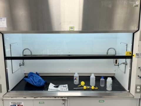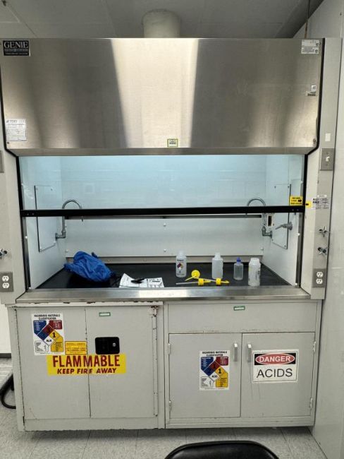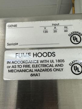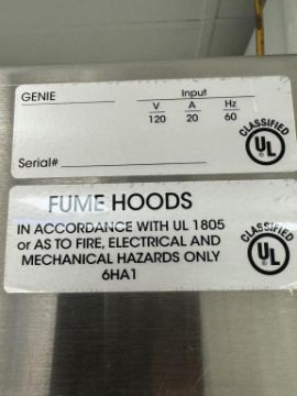 Genie Scientific Fume Hood Lot includes Fume Hood and Securall Cabinet Base. HIT # 2526073. Asset Located at 9955 Mesa Rim Road, San Diego, CA 92121.