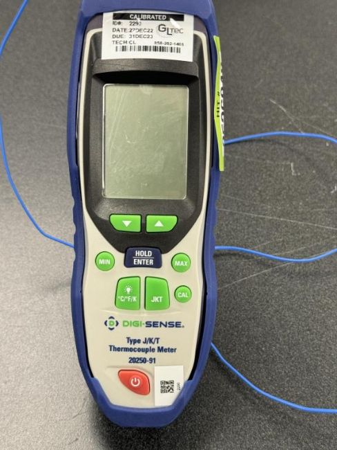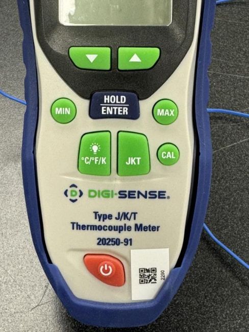 Digi-Sense J/K/T Thermocouple Thermometer with Probes. S/N 200531909. HIT # 2526048. Wet Lab 121.Asset Located at 9955 Mesa Rim Road, San Diego, CA 92121.