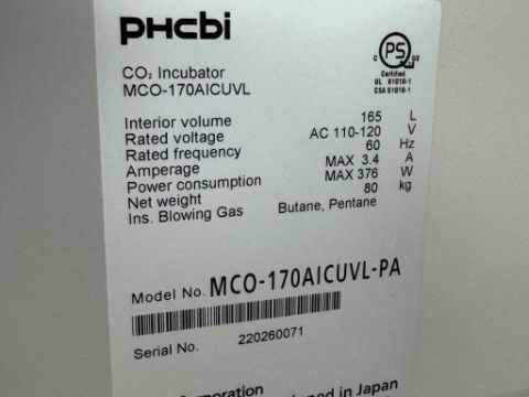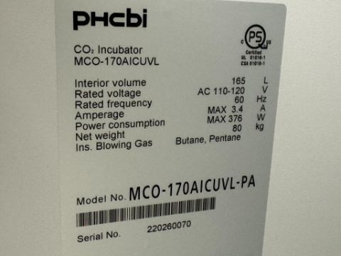 PHCBI MCO-170AICUVL-PA Double-Stacked CO2 Incubator. S/N 220260070, 220260071. HIT # 2526053. Cell Culture 128.Asset Located at 9955 Mesa Rim Road, San Diego, CA 92121.