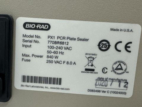 Bio-Rad PX1 Benchtop PCR Plate Sealer. S/N 770BR6812. HIT # 2526087. Automation 144.Asset Located at 9955 Mesa Rim Road, San Diego, CA 92121.