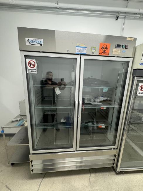Avantco Refrigeration 178A49RGHC Double Glass-Door Stainless Steel Reach-In Refrigerator. S/N 6619 1713 1909 0221. HIT # 2526080. Utility Corridor 142.Asset Located at 9955 Mesa Rim Road, San Diego, CA 92121.
