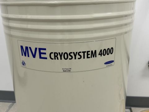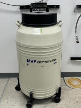 MVE Cryosystem 4000 121 Liter Cryogenic Storage System with Racks. S/N NPB2018410634Y. HIT # 2526077. Utility Corridor 142.Asset Located at 9955 Mesa Rim Road, San Diego, CA 92121.