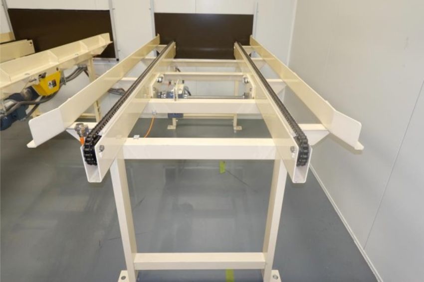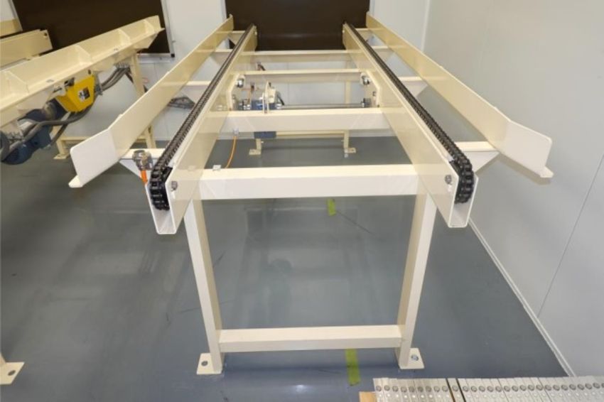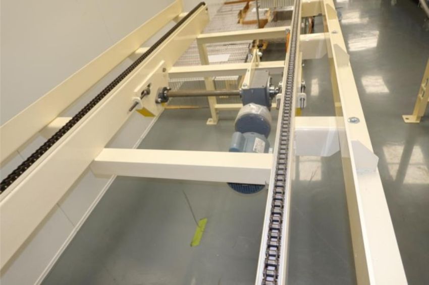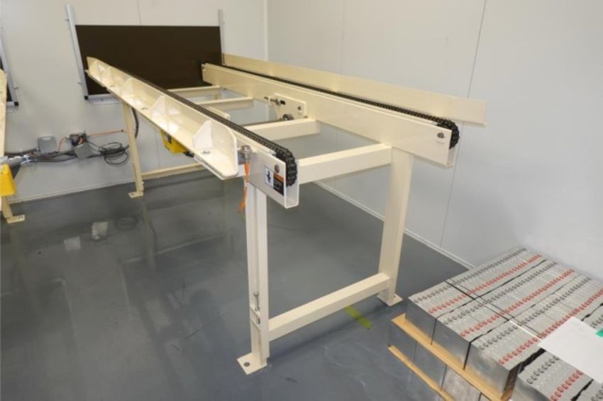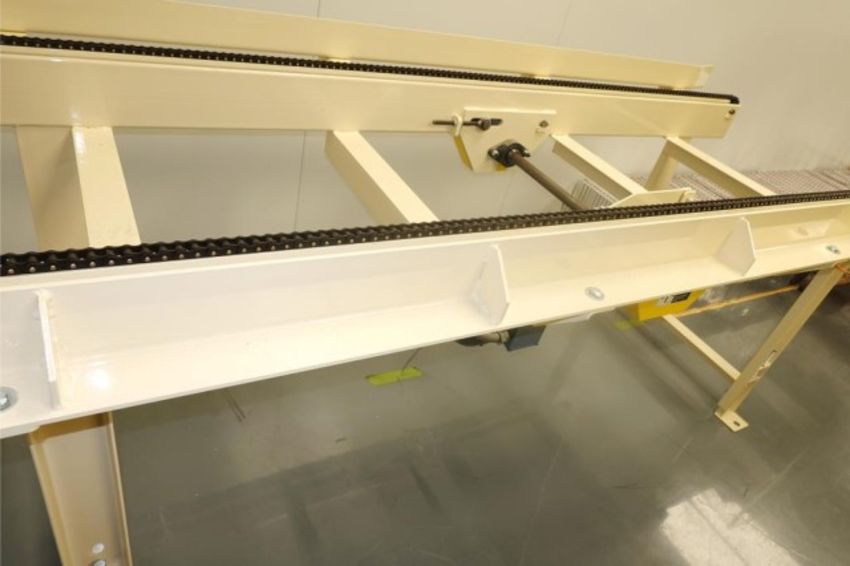 Heavy Duty Capacity Powered Chain Drive Conveyor With 1-HP Gear Drive Motor, 115/208-230V, 1-Ph, 60Hz. Approx. Dims: 9' ft. L x 41" in. W Lane Channel, Distance Between Chains 29" in. Currently Set at 42" H With Adjustable Height. HIT# 2357831. Loc: Large Dry Room- Going Into E-Fill. Asset Located at 57 Hill Ave., Endicott, NY 13760.