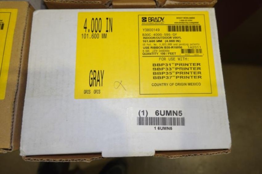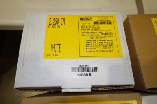 Brady BBP 37 Color and Cut Sign Label Printer With Touch Screen Controls. Includes (Approx. 20 Boxes of Assorted Label Supplies). HIT# 2357868. Loc: Formation Area. Asset Located at 57 Hill Ave., Endicott, NY 13760.