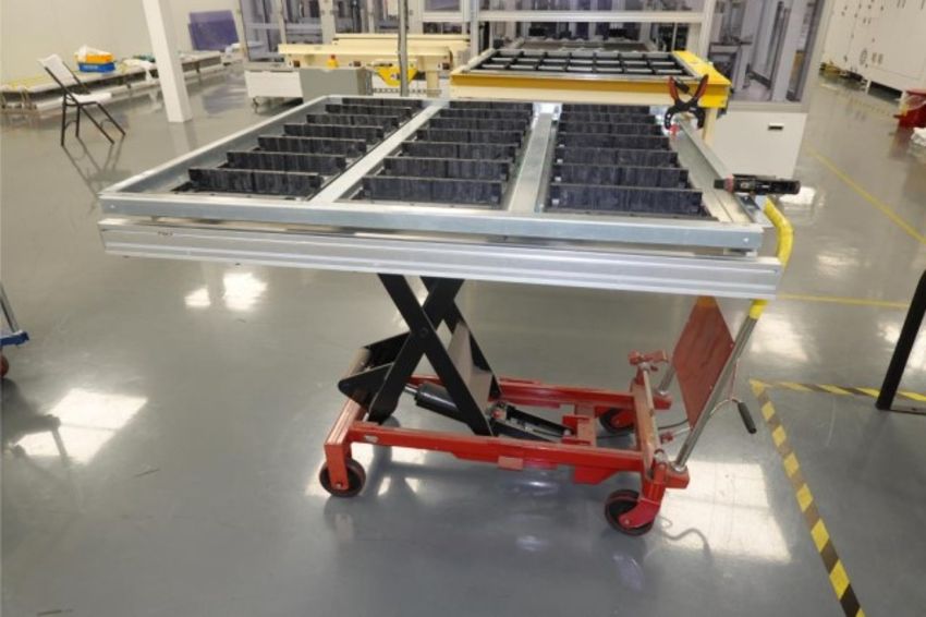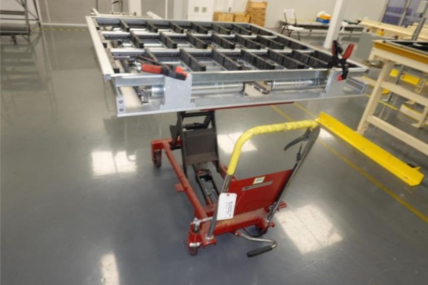 Uline H-1783 Mobile Hydraulic Lift Table With 40" x 20" in. Table & Approx. 4' x 4' ft. Roll Conveyor Assembly.1760 lb. Capacity. HIT# 2357842. Loc: HANA E-Fill Room Going To Clean Are Asset Located at 57 Hill Ave., Endicott, NY 13760.