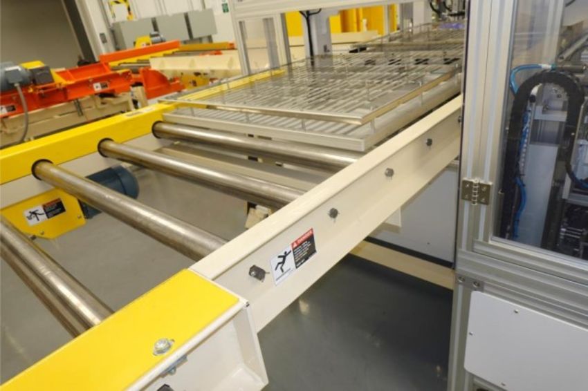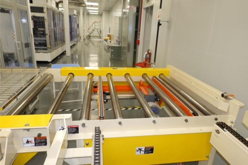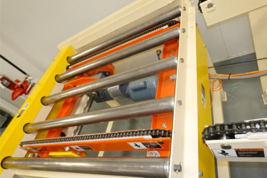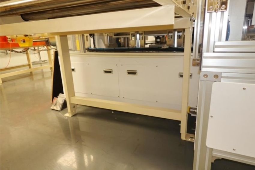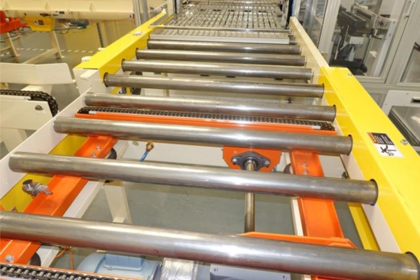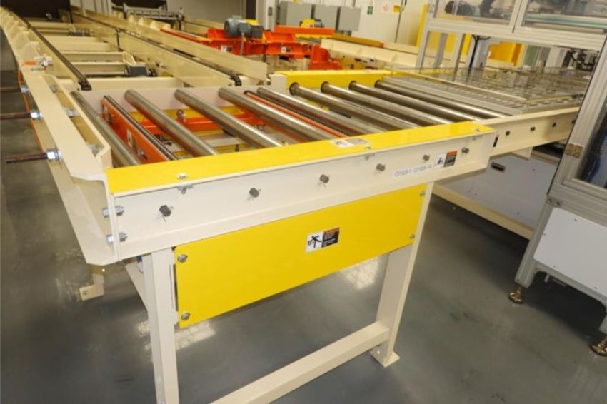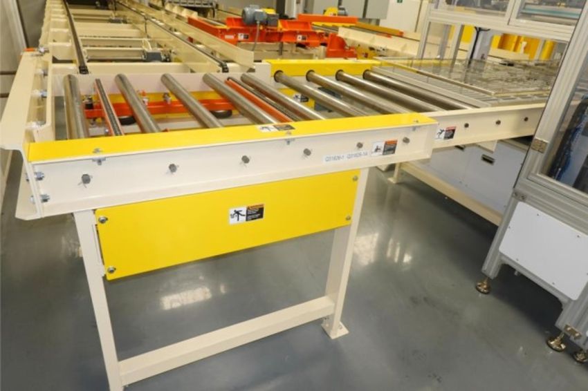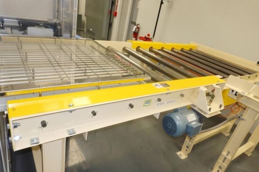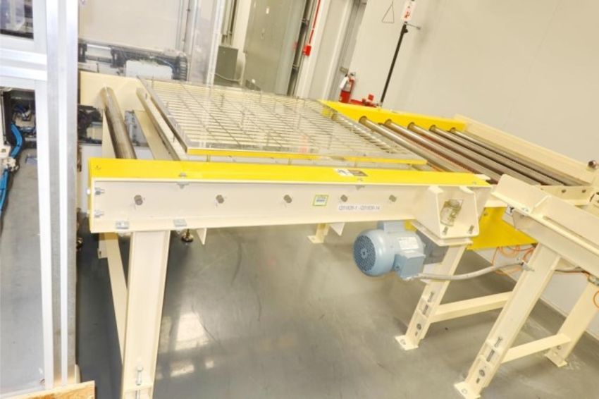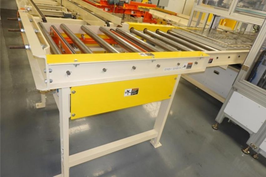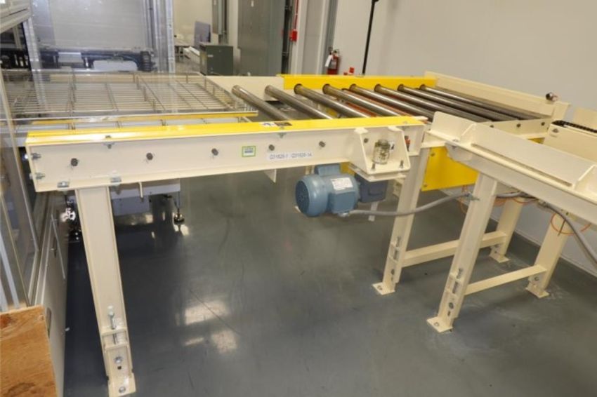 Heavy Duty Capacity Powered Chain To Roller Drive Direction Change Conveyor With 1-HP Gear Drive Motor, 115/208-230V, 1-Ph, 60Hz. Approx. Dims: 9' ft. L x 41" in. W Lane Channel, 42" in. Rollers. Currently Set at 42" H With Adjustable Height. HIT# 2357836. Loc: HANA E-Fill Room X-Ray. Asset Located at 57 Hill Ave., Endicott, NY 13760.