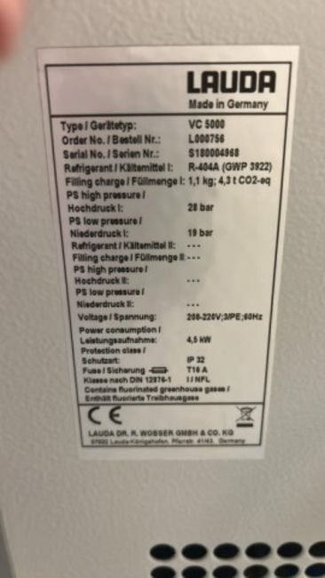 Lauda VC 5000 Chiller. S/n# S180004968. HIT# 2562019. Asset Located at 5555 W 78th Street - Suite D, Minneapolis, MN 55439.