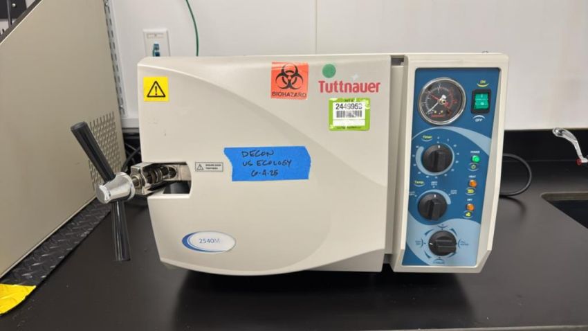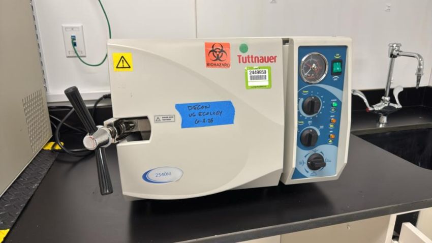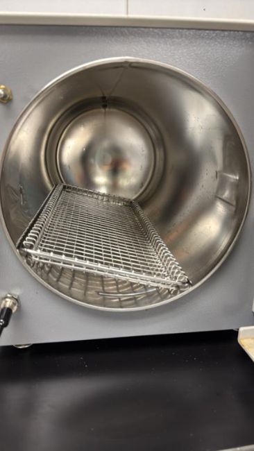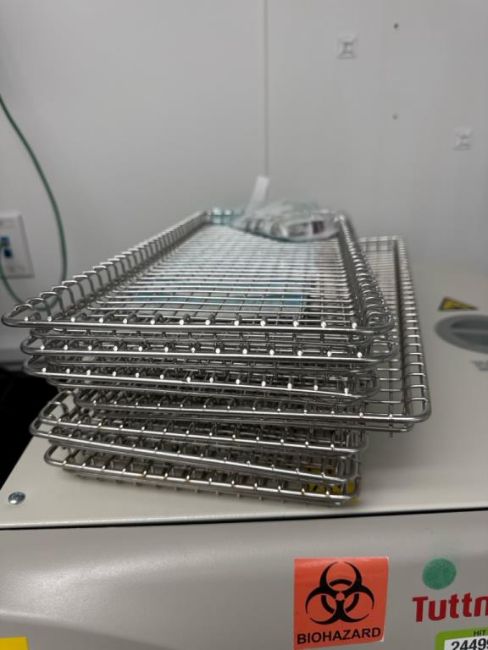 Tuttnauer 2540M Manual Autoclave Sterilizer with assorted racks as pictured. HIT# 2449959. 3rd Floor. Asset Located at 12 Gill Street, 3rd Floor, Woburn, MA 01801.