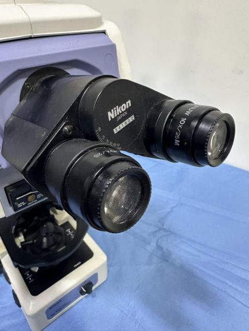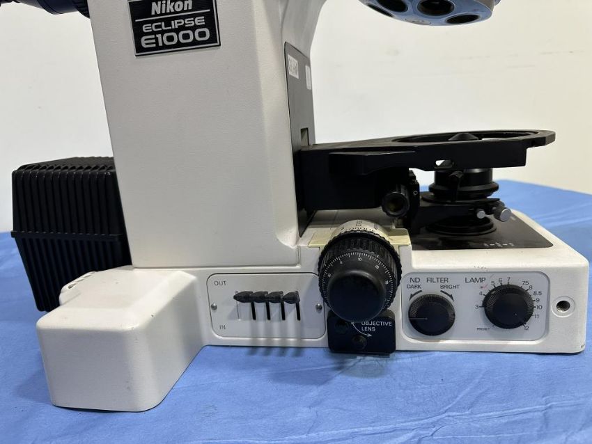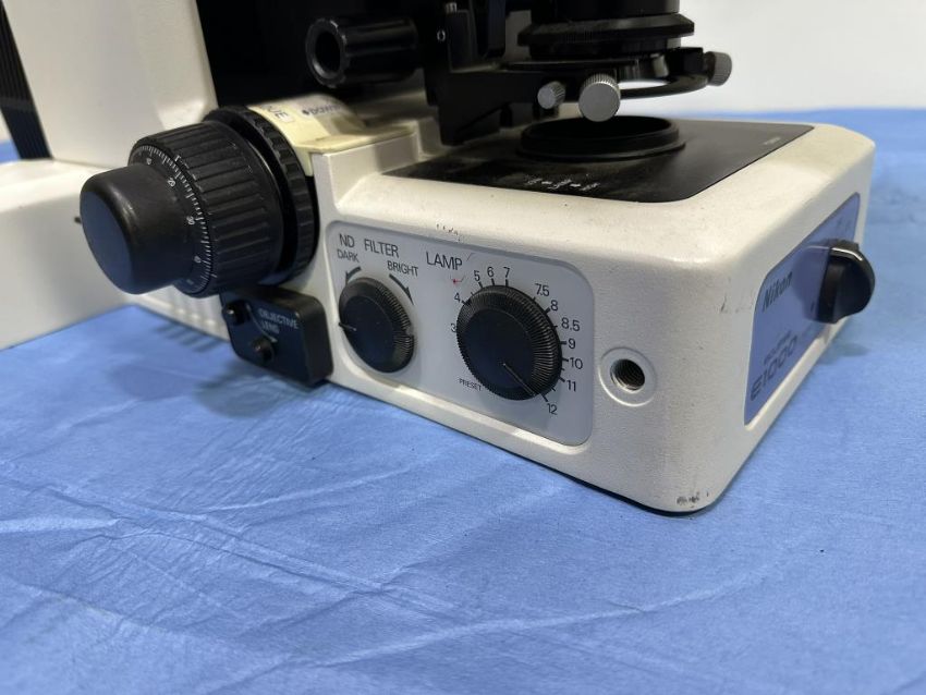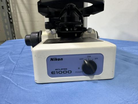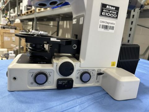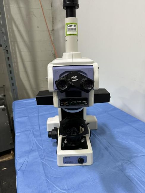 Nikon Eclipse E1000 Fluorescence Motorized Microscope, 10x/25M Eyepieces. HIT# 2491176. Loc: Rack 5. Asset is Located at 540 Western Maryland Parkway, Hagerstown, MD 21740.