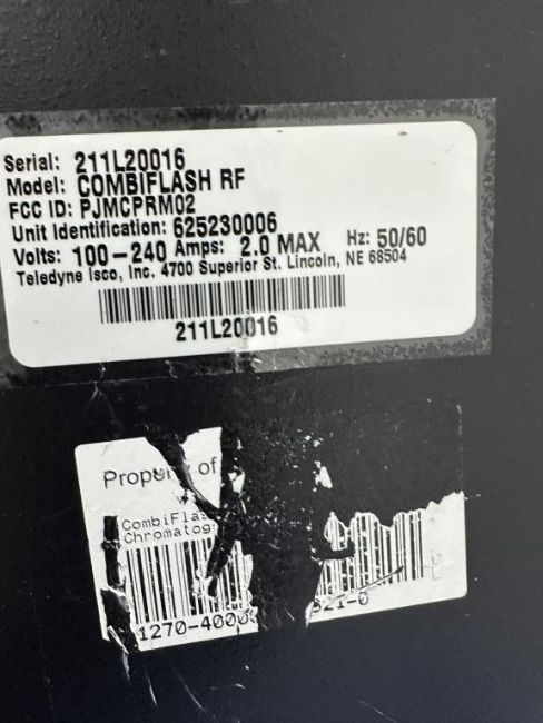 Teledyne Isco CombiFlash RF Flash Chromatography System, 100-240v. S/n#211L20016. HIT# 2491192. Loc: Rack 5. Asset is Located at 540 Western Maryland Parkway, Hagerstown, MD 21740.