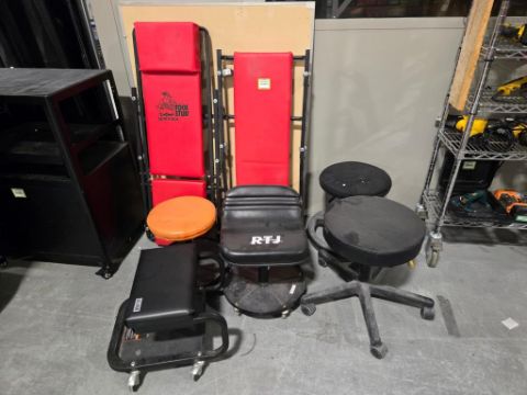 Lot Includes (7) Mechanics Work Stools & Dollies. HIT# 2477640. Unit 6 Back. Asset Located at 53 Brigham St. Unit 8, Marlborough, MA 01752. ***Auctioneer Notice*** Payment for this lot is due by no later than November 10, 2025. Removal of this lot is from November 17 - December 10, closed for Thanksgiving November 26-28. Lots not removed by close of business on December 12, 2025, will be deemed abandoned without refund or recourse.