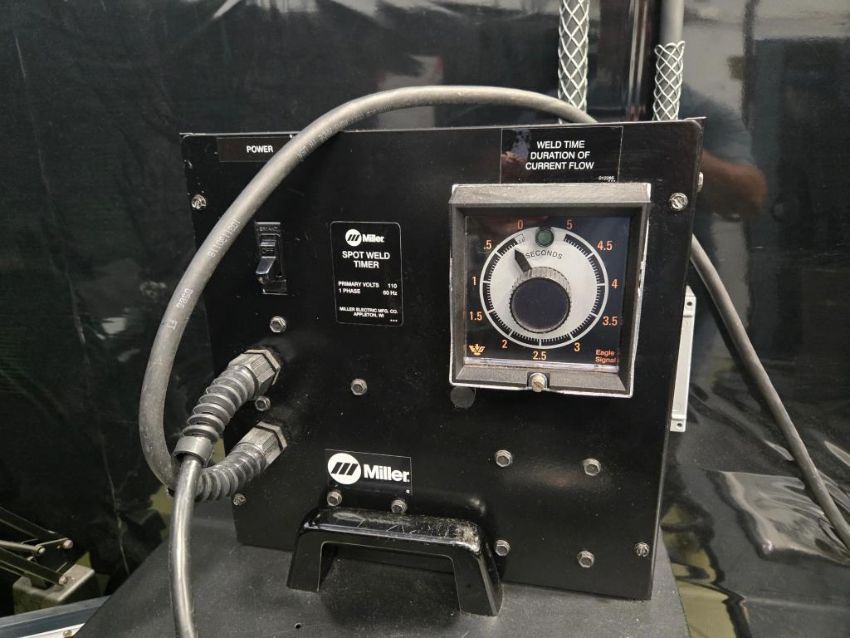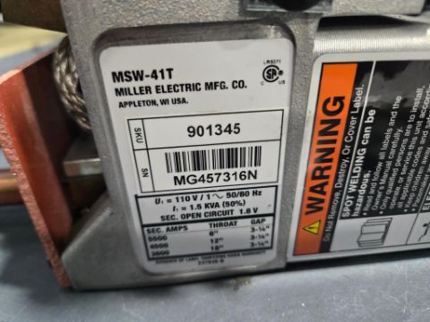 Chicago Electric/Miller MSW-41T 110V Spot Welder w/ Miller Spot Weld Timer. SN# MG457316N. HIT# 2476897. Unit 8 Front. Asset Located at 53 Brigham St. Unit 8, Marlborough, MA 01752. ***Auctioneer Notice*** Payment for this lot is due by no later than November 10, 2025. Removal of this lot is from November 17 - December 10, closed for Thanksgiving November 26-28. Lots not removed by close of business on December 12, 2025, will be deemed abandoned without refund or recourse.