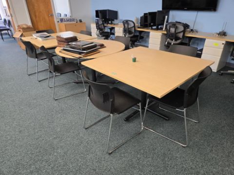 Cafeteria & Lounge Furniture to Include: (6) Wood Top Square Tables; (2) Wood Top Round Tables; (40) Stackable Poly Chairs; Sofa & Love Seat; Chair Dolly. HIT# 2477778. Unit 7 Office. Asset Located at 53 Brigham St. Unit 8, Marlborough, MA 01752. ***Auctioneer Notice*** Payment for this lot is due by no later than November 10, 2025. Removal of this lot is from November 17 - December 10, closed for Thanksgiving November 26-28. Lots not removed by close of business on December 12, 2025, will be deemed abandoned without refund or recourse.