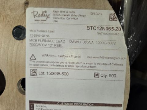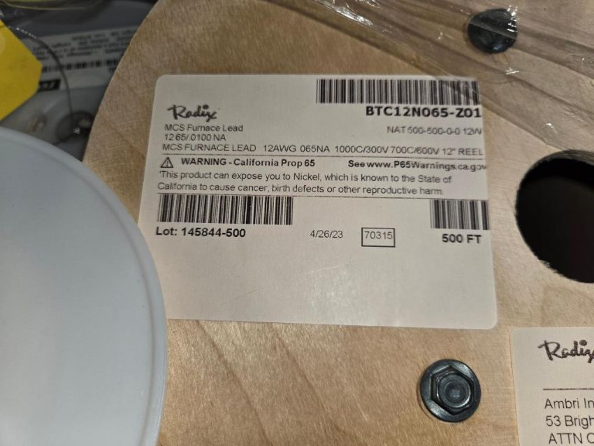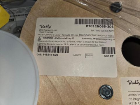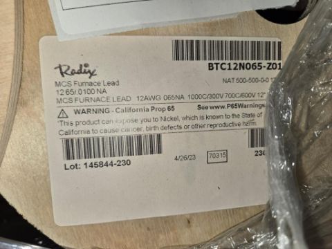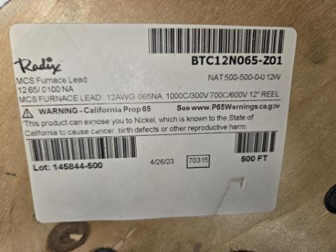 Rodix Pallet of MCS Furnace Leads Spools & Insulated T/C Wire Spools (see pictures for details). HIT# 2477591. Unit 4. Asset Located at 53 Brigham St. Unit 8, Marlborough, MA 01752. ***Auctioneer Notice*** Payment for this lot is due by no later than November 10, 2025. Removal of this lot is from November 17 - December 10, closed for Thanksgiving November 26-28. Lots not removed by close of business on December 12, 2025, will be deemed abandoned without refund or recourse.