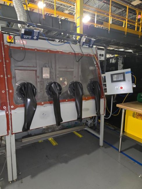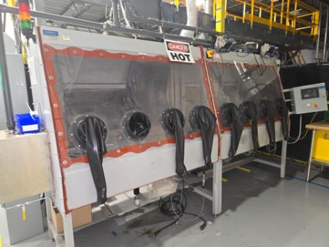 2-Compartment Steel Salt Pour Purge Glove-Box System (68"Wx54"Hx36"D Section) w/ Electrical Box & (2) Rail Mount Salt Heating Ovens. Includes: Siemens PanelView 5310 Touchscreen Controls; (2) Mettler Toledo IND570 Weighing Terminal; LC Technology Gas Purification System; (2) Edwards Vacuum Pumps w/ Oil Mist Filter (no further contents) and Metamag Rail Mount Salt Heating Ovens. HIT# 2476910. Unit 8 Back. Asset Located at 53 Brigham St. Unit 8, Marlborough, MA 01752. ***Auctioneer Notice*** Payment for this lot is due by no later than November 10, 2025. Removal of this lot is from November 17 - December 10, closed for Thanksgiving November 26-28. Lots not removed by close of business on December 12, 2025, will be deemed abandoned without refund or recourse.