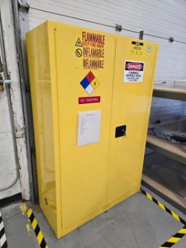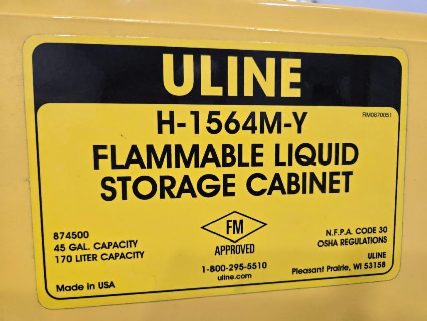 Uline H-1564M-Y Flammable Liquid Storage Cabinet, Capacity 45gal. HIT# 2476871. Unit 8 Front. Asset Located at 53 Brigham St. Unit 8, Marlborough, MA 01752. ***Auctioneer Notice*** Payment for this lot is due by no later than November 10, 2025. Removal of this lot is from November 17 - December 10, closed for Thanksgiving November 26-28. Lots not removed by close of business on December 12, 2025, will be deemed abandoned without refund or recourse.